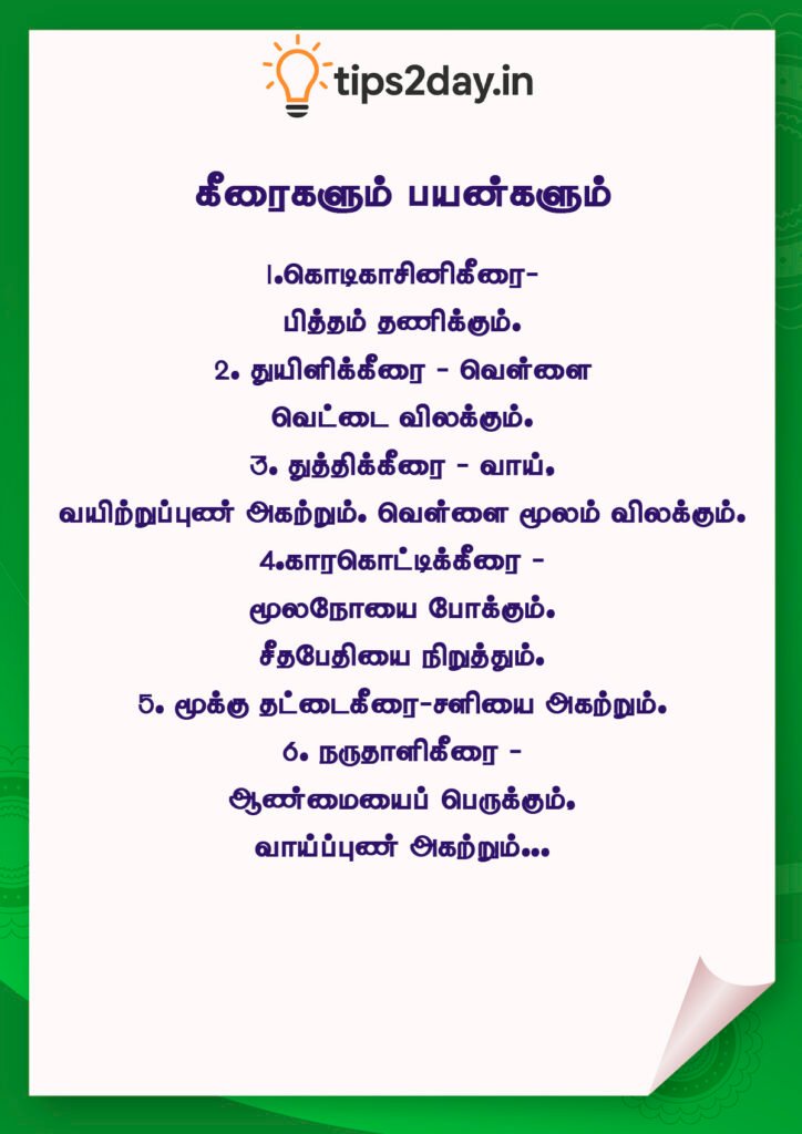 அழகு பராமரிப்பு ஆரோக்கியம் இயற்கை உணவு“கீரைகளும் அதன் பயன்களும்” thirukumarbfa@gmail.com6 months ago6 months ago01 mins Post navigation Previous: உடல் எடையை குறைக்க இயற்கை பானங்கள் | Weight Loss Drinks in TamilNext: எண்ணம் போல் வாழ்க்கை… Leave a Reply Cancel replyYour email address will not be published. Required fields are marked *Comment * Name * Email * Website Save my name, email, and website in this browser for the next time I comment.